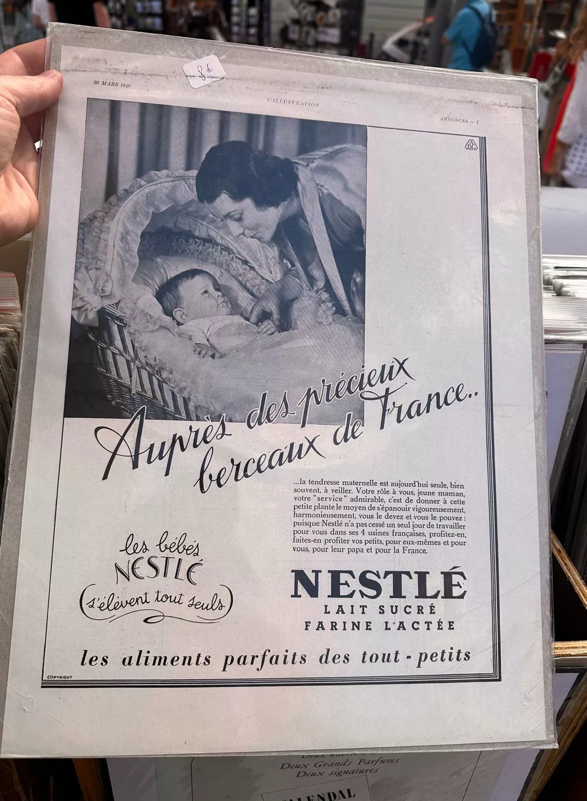 En feuilletant les archives de la publicité, on tombe sur des slogans qui font froid dans le dos. Mars 1940 : « Les bébés Nestlé s’élèvent tout seuls ». En pleine guerre, alors que les personnes allaitantes sont isolées, l’industrie agroalimentaire s’immisce dans la faille émotionnelle.